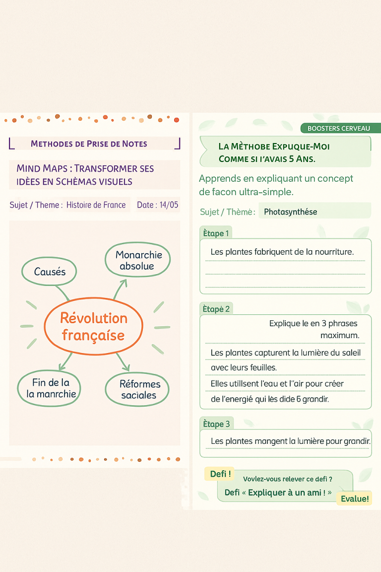 Techniques visuelles et synthèse active pour mieux retenir.